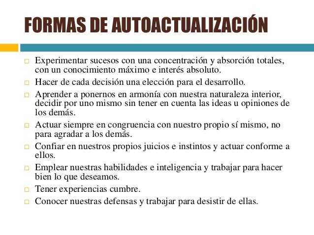 Estas personas aceptan tanto las emociones positivas como las negativas. Las emociones negativas no son negadas, sino examinadas (en lugar de recurrir a mecanismos de defensa del yo). Si una persona no puede abrirse a sus propios sentimientos, no se puede abrir a la actualización del yo.